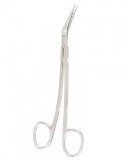 Gum Scissors Angled to side, one serrated blade, Carb-N-Sert inserts